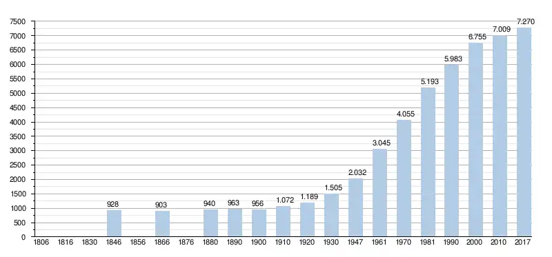 - Bronnen:NIS, Opm:1806 tot en met 1981=volkstellingen; 1990 en later= inwonertal op 1 januari
