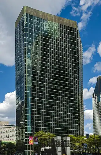 La Laurentienne Building (French: Édifice La Laurentienne) is a 102-metre (335 ft), 27-story skyscraper in Montreal, Quebec, Canada. The building was designed by Dimitri Dimakopoulos & Associates for Marathon Realty, Lavalin and the Laurentian Bank. It is located on René-Lévesque Boulevard at the intersection of Peel Street, in the Ville-Marie borough of Downtown Montreal. It is adjacent to the Bell Centre and the 1250 René-Lévesque skyscraper to the south, and stands on the site of the former Laurentian Hotel.[2][3]