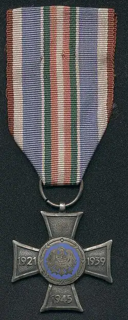 Silesian Uprising Cross (Polish: Śląski Krzyż Powstańczy) is a Polish military decoration, established in 1946, awarded to veterans of the Silesian Uprisings (1919-1921)[1] and to members of Polish resistance in World War II active in Silesia. The order ceased to be given out in 1999.