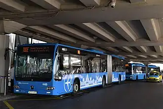 Route 100E is a bus route in Budapest that serves as an express service between Budapest Ferenc Liszt International Airport and downtown Pest. It is operated by ArrivaBus for Budapesti Közlekedési Központ (BKK) and requires a premium fare (2200 HUF one-way as of April 2023[2]). The route operates at all times.