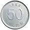 | | ₩50 | 21.6 mm | 4.16 g | 70% copper 18% zinc 12% nickel | Reeded | Stalk of rice, value (hangul) | Value (digit), bank title (hangul), year of minting | 1972 | December 1, 1972 | Still circulating | Series I (가) |