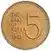 | | ₩5 | 20.4 mm | 2.95 g | High brass 65% copper 35% zinc | Plain | Geobukseon, value (hangul) | Value (digit), bank title, year of minting | 1983 | January 15, 1983 | Series III (다) |