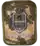 Emblem shows a stylized bow with an arrow placed inside of golden circle, which was a part of Kyiv Regiment flag during the Cossack Hetmanate.[33]