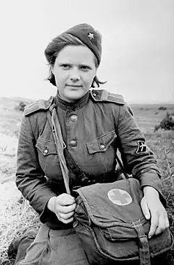 The 15th Rifle Division took part in the defensive battle at Voronezh in the summer of 1942 and in the subsequent battle to liberate the city in 1943. On the night of 5 July 1943, reconnaissance units of the division captured a prisoner who showed that the German troops would launch an attack on Kursk during the same day,[7] and the division fought in the Battle of Kursk.[8]