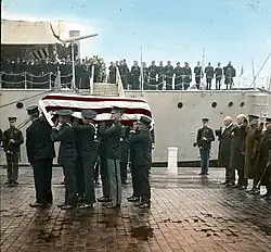 January–March March 4: Warren G. Harding becomes the 29th U.S. president Calvin Coolidge becomes the 29th U.S. vice president Unknown Soldier from World War I being taken from the USS Olympia (C-6) at the Washington Navy Yard and transported to the US Capitol to lay in state. On November 11 the body is interred at Arlington National Cemetery . January – E. W. Scripps and William Emerson Ritter found Science Service , later renamed Society for Science & the Public , in the United States, with the goal of keeping the public informed of scientific developments.[ 1] January 1 – In American football , the University of California defeats Ohio State 28–0 in the Rose Bowl . January 2 January 21 – The full-length silent comedy-drama film The Kid , written, produced, directed by and starring Charlie Chaplin (in his Tramp character), with Jackie Coogan , is released. March 4 – Warren G. Harding is sworn in as the 29th president of the United States , and Calvin Coolidge is sworn in as the 29th vice president of the United States . March 25 – The first Lowe's opens in North Wilkesboro, North Carolina .