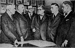 The Chicago Federation of Labor endorsed Thompson.[51] Margaret Haley, president of the Chicago Federation of Teachers, personally endorsed him as well.[51] The Cook County Wage-Earners' League ran an advertisement for Thompson in the Chicago Tribune, in which it claimed that 95 percent of the trade unions in Chicago endorsed him.[67] However, in actuality, labor support was divided between the two major party candidates. While the Cook County Wage Earners, headed by Chicago Federation of Labor vice-president Oscar F. Nelson, backed Thompson, a notable group of labor officials also backed Dever. Among those backing Dever were Chicago Federation of Labor president John Fitzpatrick and Illinois State Federation of Labor secretary Victory A. Olander.[68] Dever also received the endorsement of the union representing the city's transit employees (workers on its streetcar and elevated lines).[69][70]