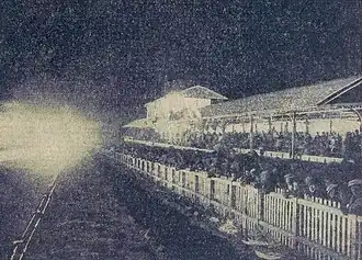 Nuvolari preferred not driving at night, so Sommer continued driving in the dark until just before dawn.[6] At the halfway mark, the four Alfas were still well out in front with Sommer having done 118 laps. The smaller Siko/Charavel Alfa had moved past the stationary Bugatti into fifth with Driscoll's Aston Martin in seventh ahead of the Riley in eighth with twenty cars still on-track.[21]