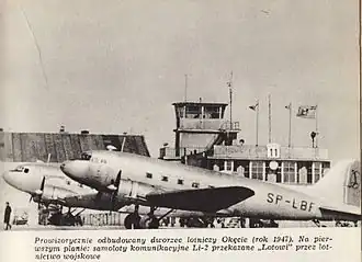 ![]() Two Li-2s, similar to the accident aircraft, at Warsaw Chopin Airport in 1947. | |