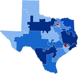 Democrats maintained their majority of U.S. House seats from Texas, gaining two seats from the Republicans, increasing their majority to twenty-two out of twenty-four seats.[4]