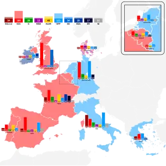 | LDR | Liberals and Liberal Democrats | West Germany 4, Belgium 4, Denmark 3, France 13, Ireland 2, Italy 3, Luxembourg 1, Netherlands 4, Spain 6, Portugal 9 | 9% | 49 | |