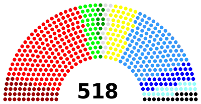 ![]() Post-election composition of each member state's delegation * The number of seats was increased from 434 to 518 – so this is a nominal figure | |||||||||||||||||||||||||||||||||