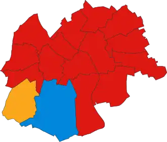 | Labour | 13 | 86.7 | 18 | 31 | 68.9 | 22,757 | 53.7 | +7.0 | ||