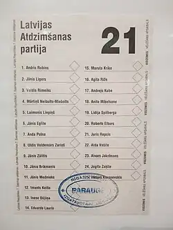 Parliamentary elections were held in Latvia on 3 October 1998.[1] The People's Party emerged as the largest party in the Saeima, winning 24 of the 100 seats.