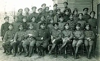 ![]() Officers of the 1st Daugavgrīva Latvian Rifle Battalion after the battle | |||||||