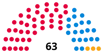 Party Candidates Seats Gains Losses Net gain/loss Seats % Votes % Votes +/−
