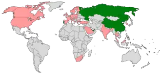 Countries that hosted F1 Powerboat races in 2010, shown in green. Former host nations are shown in pink.