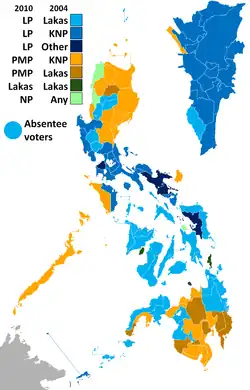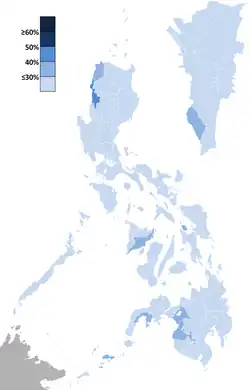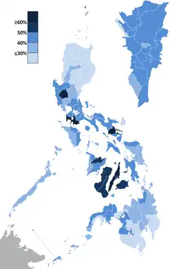 ![]() Map showing the official results taken from provincial and city certificates of canvass. The inset shows Metro Manila. | |||||||||||||||||||||||||||||||||||||||||