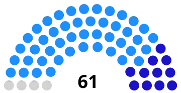 Last election 45 seats, 69.19% 2 seats, 10.26%