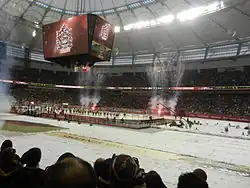The 2014 NHL Heritage Classic was an outdoor regular season National Hockey League (NHL) game held indoor, part of the Heritage Classic series of outdoor NHL ice hockey games in Canada. It took place on March 2, 2014, in BC Place in Vancouver, with the Ottawa Senators facing off against the home team Canucks.[1] It is the first "outdoor" game to be played in what technically is an indoor stadium, albeit one of a larger capacity than a typical NHL arena; BC Place is a retractable roof venue, and it is unknown if the stadium has the capabilities to keep its roof open during inclement weather (several stadiums of the type explicitly cannot be kept open in such an environment due to drainage concerns). The game was televised nationally in Canada on CBC and nationally in the United States on NBCSN.