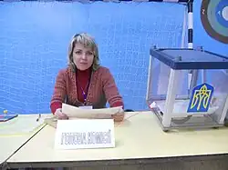 On 15 November Opposition Bloc Yuriy Vilkul was declared winner of the second round of the mayoral elections in Kryvyi Rih.[63] But runner-up Yuriy Myloboh of Self Reliance filed complaints about the violations of the electoral process.[63] The Verkhovna Rada (on 23 December 2015) set early elections of the mayor of Kryvyi Rih on 27 March 2016.[2] According to NGO's OPORA and Committee of Voters of Ukraine these re-elections were marked by large-scale bribery, the use of administrative resources and other violations.[64] Vilkul won the re-election with 74.18% of the vote; followed by Semen Semenchenko for Self Reliance with 10.92%.[65] Voter turnout on 27 March 2016 was 55.77%.[66]