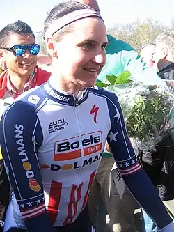 The individual classification was won by American rider Megan Guarnier, riding for the Boels–Dolmans team.[1] Guarnier took the lead of the standings after winning the Tour of California,[2] maintaining it for the remainder of the year, adding further race victories at the Philadelphia Cycling Classic,[3] and the Giro d'Italia Femminile.[4] Her closest competitor, Canada's Leah Kirchmann (Team Liv–Plantur) finished over 300 points in arrears in second place. Third place in the standings went to the defending world champion Lizzie Armitstead of Great Britain, also riding for Boels–Dolmans. Armitstead took four victories – the most by any rider in 2016 – including a win in her home race, the Women's Tour.[5]