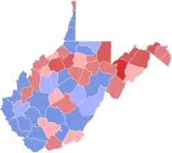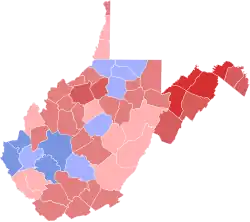 Republican Donald Trump easily carried West Virginia, capturing 68.5% of the vote and sweeping every county in the state, his strongest vote share in the nation.[1]