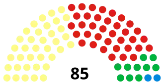 - ^ Note 1: A vacancy created less than six months before the election was not filled so there were only 84 councillors prior to the poll.