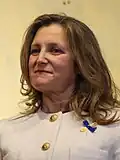 ![]() Chrystia Freeland | Deputy Prime Minister of Canada (2019–2024) Minister of Finance (2020–2024) Minister of Intergovernmental Affairs (2017–2020) Minister of Foreign Affairs (2017–2019) Minister of International Trade (2015–2017) MP for University—Rosedale (2015–present) MP for Toronto Centre (2013–2015) |