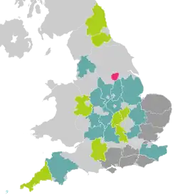 There are 21 county councils in England. All of them hold whole-council elections on a four-year cycle that includes 2025. However, 7 county councils (Norfolk, Suffolk, Essex, Surrey, East Sussex, West Sussex and Hampshire) had their elections postponed due to local government reorganisation. A total of 16 county councils applied for their elections to be postponed, though 9 (Derbyshire, Devon, Gloucestershire, Kent, Leicestershire, Lincolnshire, Oxfordshire, Warwickshire and Worcestershire) had this request rejected and their elections went ahead as planned, as these places were not part of the Devolution Priority Programme.[43]
