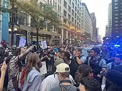 On January 25, a demonstration began at Water Tower Place in downtown Chicago, featuring multiple social justice speakers before participants marched to Trump Tower. The demonstration was originally scheduled for President Trump's second inauguration on January 20, but was postponed due to severe weather conditions. Over 60 advocacy organizations were involved in the march.[5]