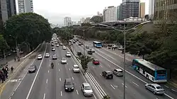The speed limit on the avenue, set at 80 kilometers per hour in November 1970, was lowered to 70 kilometers per hour in February 2010. The stretch of the avenue between the Dona Paulina Viaduct and the Anhangabaú tunnel has a speed limit of 60 kilometers per hour because it curves.[5][42][43]