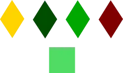 The practice of wearing battalion specific insignia (often called battle patches) in the B.E.F. began in mid 1915 with the arrival of units of Kitchener's Armies and was widespread after the Somme Battles of 1916.[73] The patches shown were worn by the division during 1917.[74] There was no overall division scheme for the battle patches, they were adopted gradually from mid 1916.[75]