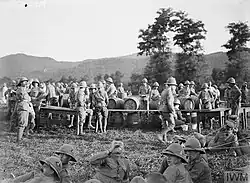 News was received that the division was expected to return to France, and relief of the division from the plateau completed by 27 September by 20th Italian division, and training in open battle commenced around Costa Bissara then Trissino.[57] Since arriving on the plateau the division had taken over 700 prisoners and deserters.[a][58]