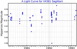 A light curve for V4381 Sagittarii, plotted from Hipparcos data[1]