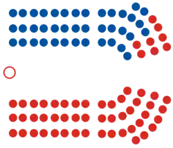 The 42nd Parliament was the second (and final) term of the controversial fourth Labour Party government. Initially, the only other party in the 42nd Parliament was the National Party, with the Democratic Party having lost the two seats it held in the 41st Parliament. Later, a dissident Labour MP, Jim Anderton, would found the NewLabour Party in 1989.[1] Due to internal disputes within the Labour Party, there were three Prime Ministers during the 42nd Parliament: David Lange, Geoffrey Palmer, and Mike Moore.
