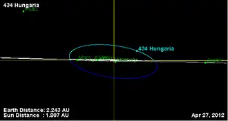 - ^ a b c d e "JPL Small-Body Database Browser: 434 Hungaria (1898 DR)" (last observation: 2015-11-21). Jet Propulsion Laboratory. Retrieved 10 May 2016.