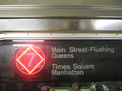 - ^ Donohue, Pete (April 1, 2008). "On No. 7 trains, red diamond means express, a green circle for local". New York Daily News. Archived from the original on March 22, 2015. Retrieved May 5, 2015.