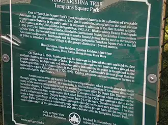 - Tompkins Square Park (9 October 1966), "Tompkins Square Park Highlights", Hare Krishna Tree : NYC Parks, retrieved 20 October 2023