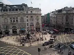 The first part of Regent Street, from Waterloo Place to Piccadilly Circus, is also signed as the A4; all traffic here runs in a northbound direction.