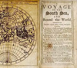 Once the journey was over, sailor Edward Cooke (not to be confused with the later Captain Cooke) wrote up an account, in two volumes, that was printed the next year.[1] In it were updated maps, including of the Amazon River, and An Account is given of Mr. Alexander Selkirk, about a man who had been marooned on the uninhabited island of "Más a Tierra" (renamed Robinson Crusoe Island in 1966), for four years and it covered his manner of living being adept at hunting, taming wild beasts and making use of the resources available. Selkirk's story is the inspiration for the 1719 novel, Robinson Crusoe.[2]