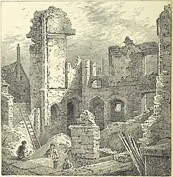 Following the Dissolution, the abbey is said to have served for a time as the residence of John Clerk, Bishop of Bath and Wells, a veteran diplomat of Henry VIII; the King seizing the Bishop's own London residence in compensation.[24] It also came to house officers of the Tower of London. In 1552, under Edward VI, it was given to Henry Grey, 1st Duke of Suffolk, the father of Lady Jane Grey.[25] In 1554 it reverted to government use, housing the Ordnance Office and its stores, transferred there from the Tower of London. Some of the abbey buildings survived until their destruction by fire in 1797.