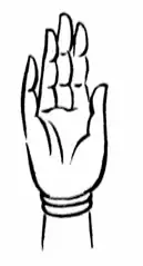 The abhayamudra (Sanskrit: अभयमुद्रा, romanized: abhayamudrā, lit. 'gesture of fearlessness')[2] is a mudra (gesture) that is the gesture of reassurance and safety, which dispels fear and accords divine protection and bliss in Hinduism, Buddhism, and other Indian religions. The right hand is raised to shoulder height, with the palm is facing outward and the fingers pointing upwards [3] This is one of the earliest mudras found depicted on a number of Hindu, Buddhist, Jain, and Sikh images.