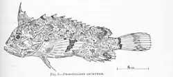 - ^ Christopher Scharpf & Kenneth J. Lazara, eds. (10 March 2022). "Order Perciformes (Part 10): Suborder Scorpaenoidei: Families Apistidae, Tetrarogidae, Synanceiidae, Aploacrinidae, Perryenidae, Eschmeyeridae, Pataecidae, Gnathanacanthidae, Congiopodidae and Zanclorhynchidae". The ETYFish Project Fish Name Etymology Database. Christopher Scharpf and Kenneth J. Lazara. Retrieved 22 April 2022.