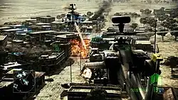 In Domination, two teams of 4v4 or 8v8 battle it out to take control of three different bases in one single city. Taking control of a base is similar to the "King of the Hill" mode in other games; when a base is neutral, one team must stay inside it for a certain amount of time to take it over. The opposing team must destroy the ground targets that now pop up around that base, and then they must stay inside for a certain amount of time to take it over. Every 60 seconds, points are awarded to each team, 1 for each base they control at the time. The team with the most points wins.