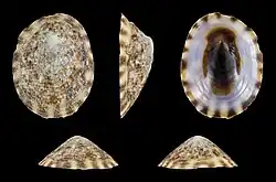 Testudinalia testudinalis, common name the common tortoise limpet, is a species of sea snail, a true limpet, a marine gastropod mollusk in the family Lottiidae, one of the families of true limpets.[1] It is commonly known as the plant limpet or tortoiseshell limpet.[2]