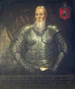 Adam Kisiel[1][2][3] (Polish: Adam Kisiel; Ukrainian: Адам Кисіль, romanized: Adam Kysil;[4][5] 1580[6] or 1600[7] – 3 May 1653)[8] was a Polish nobleman of Ruthenian origin.[9][10] He served as the voivode of Kiev from 1649 to 1653.[11] He was also the castellan or voivode of Czernihów from 1639 to 1646. Kisiel has become better known for his mediation during the Khmelnytsky Uprising.