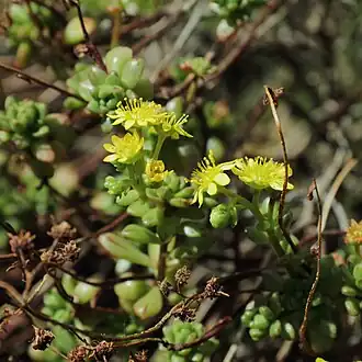 Aeonium sedifolium is a perennial flowering plant in the stonecrop family Crassulaceae. The plant is native to the western Canary Islands of Tenerife, La Gomera and La Palma.[1]: 173