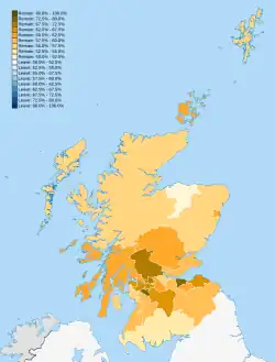 Scotland voted 62% to remain in the European Union, with all 32 council areas returning a majority for remaining (albeit with an extremely narrow margin of 122 votes in Moray).[155] Scottish First Minister Nicola Sturgeon said it was "clear that the people of Scotland see their future as part of the European Union" and that Scotland had "spoken decisively" with a "strong, unequivocal" vote to remain in the European Union.[156] The Scottish Government announced on 24 June 2016 that officials would plan for a "highly likely" second referendum on independence from the United Kingdom and start preparing legislation to that effect.[157] Former First Minister Alex Salmond said the vote was a "significant and material change" in Scotland's position within the United Kingdom, and that he was certain his party would implement its manifesto on holding a second referendum.[158] Sturgeon said she will communicate to all EU member states that "Scotland has voted to stay in the EU and I intend to discuss all options for doing so."[6] An emergency cabinet meeting on 25 June 2016 agreed that the Scottish Government would "begin immediate discussions with the EU institutions and other member states to explore all the possible options to protect Scotland's place in the EU."[159]