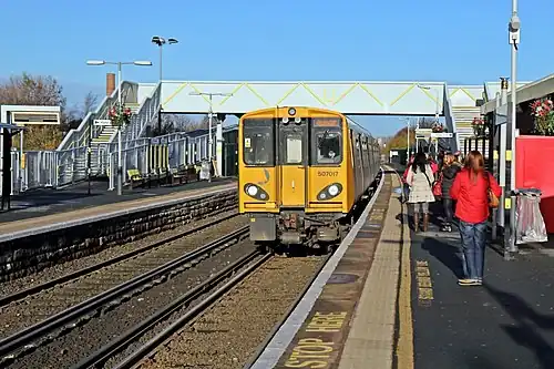 Aintree railway station is a railway station that serves the village of Aintree, Merseyside, England. It is on the Ormskirk branch of the Merseyrail network's Northern Line. Until 1968 it was known as Aintree Sefton Arms after a nearby public house. The station's design reflects that it is the closest station to Aintree Racecourse, where the annual Grand National horse race takes place.