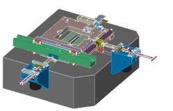 - When transporting solar panels for satellites in a launching rocket, these must be folded. After reaching orbit, they unfold via a spring mechanism, weightlessly and without friction. This process requires prior testing on Earth due to reliability reasons. During the testing design, the solar panels are hung on magnetic preloaded air-bearings that compensate for gravity. In doing so, the unfolding movement process is carried out with a minimum friction impact which means that the solar panels are tested at close to reality. Moreover, the design offers absolutely maintenance-free handling with equal sequential movements. The air-bearing components (diameter 34 mm) with integrated magnets are so small such that they are able to glide contact-free along conventional rolled sheet plates smoothly and with a bearing gap height of about 25 μm. The holding force of an air bearing for one solar panel averages 600 N. This force is achieved by an equal distribution of the load on 16 single air bearing elements. The unfolding process of the solar panels has been developed for an area of 21 m x 2.5 m. The permanent magnetic preloaded air-bearing guidance system may be used for many types of hanging transportation movements as well as for many other applications, such as for instance for the stick-slip-free positioning of components during assembly.